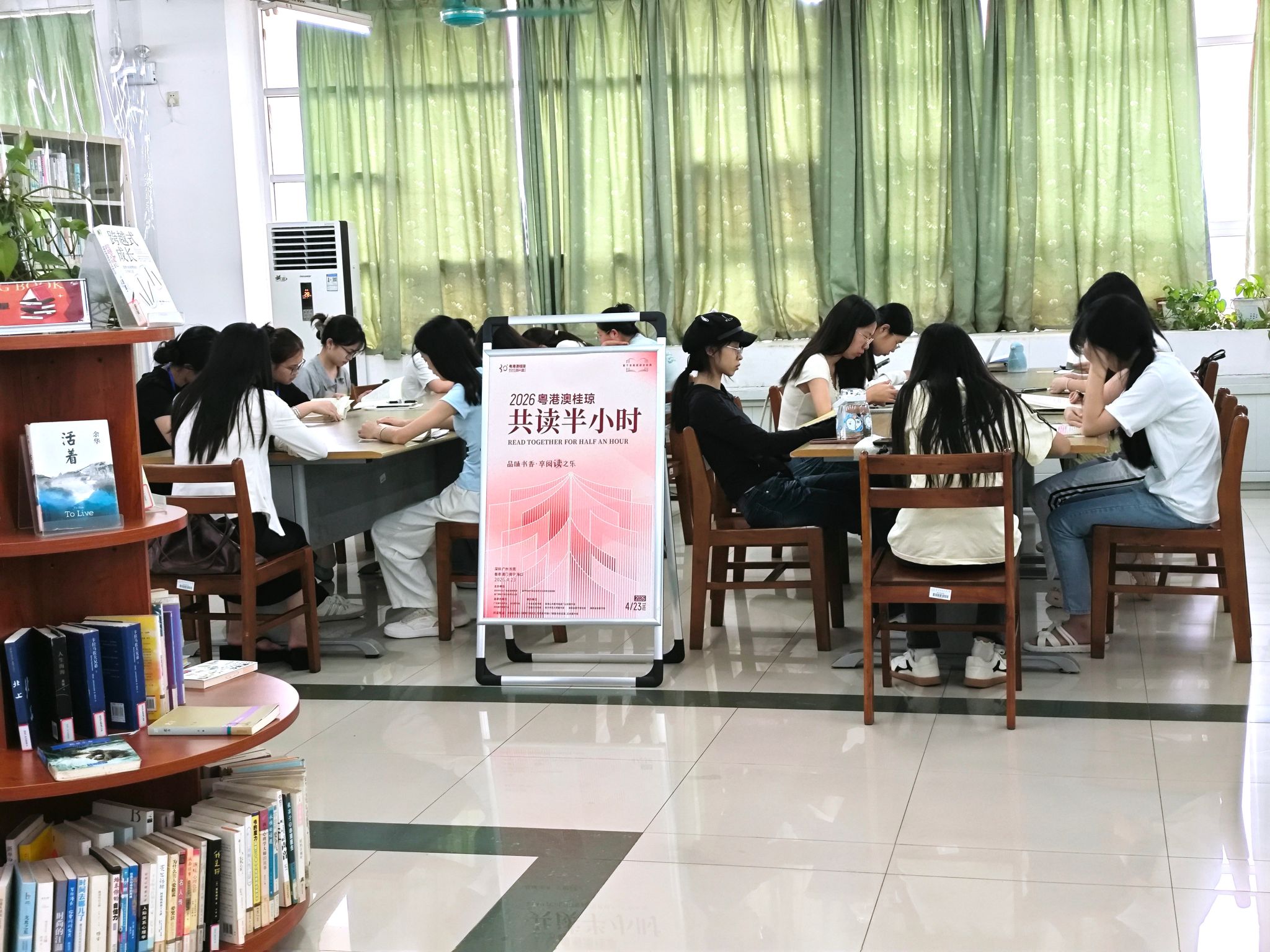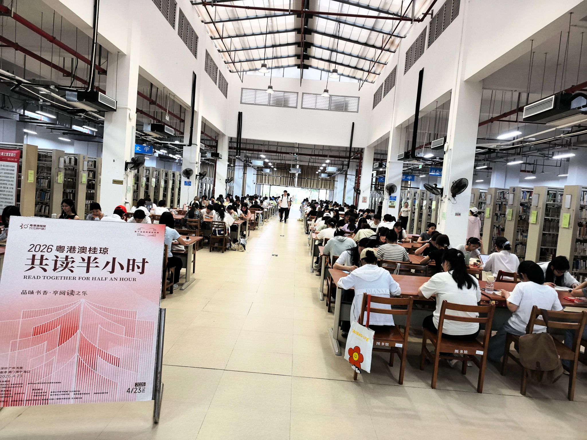 在第31个“世界读书日”来临之际,为进一步推动全民阅读深入开展,丰富2026年我校全民阅读暨“走进好书”读书月系列活动内涵,4月22日至23日,我校图书馆联合校团委、附属幼儿园顺利举办2026年粤港澳桂琼“共读半小时”活动。本次活动以“品味书香·享阅读之乐”为主题,吸引了全校约1200名师生积极参与,共赴书香之约。