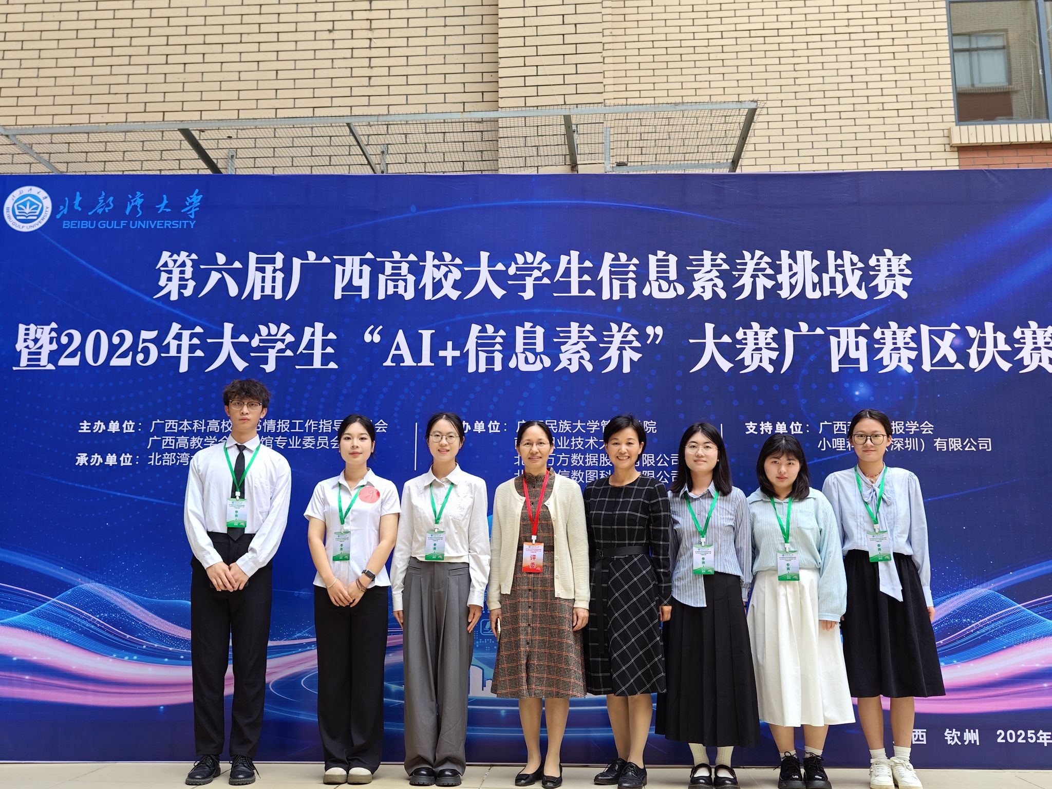 11月9日,第六届广西高校大学生信息素养挑战赛暨2025年大学生“AI+信息素养” 大赛广西赛区决赛在北部湾大学举行。我校本科生和研究生参赛队分别获本科组和研究生组优秀奖。