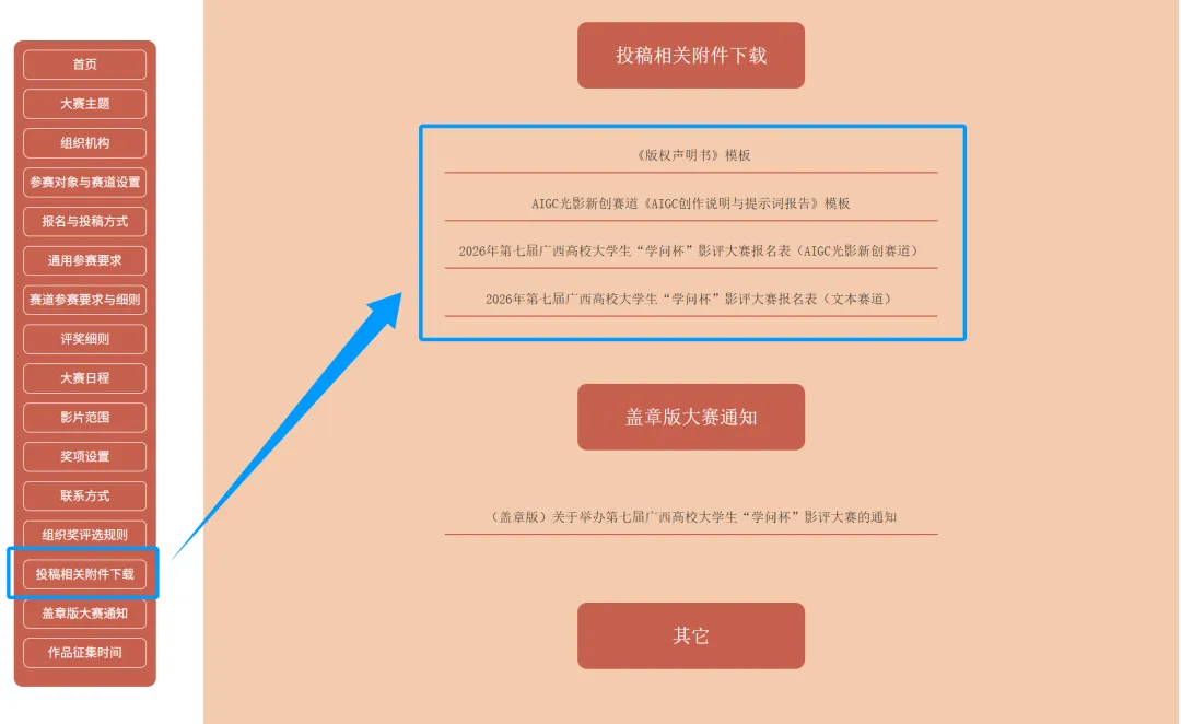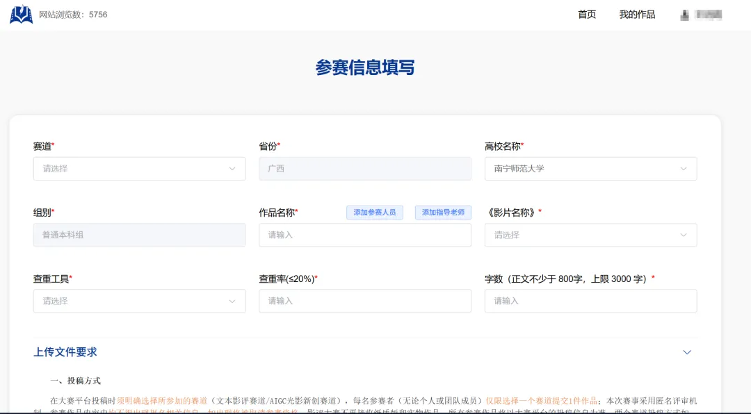 (一)报名方式:登录2026年广西第七届高校大学生“学问杯”影评大赛平台报名(网址:http://movie.hl-idea.com),参赛者在平台上实名注册后,选择个人所属院校对应的省份赛区,按照官方网站提示报名参赛并提交参赛作品,参赛者请务必如实填写作者确切信息,方便大赛组委会日后联系。